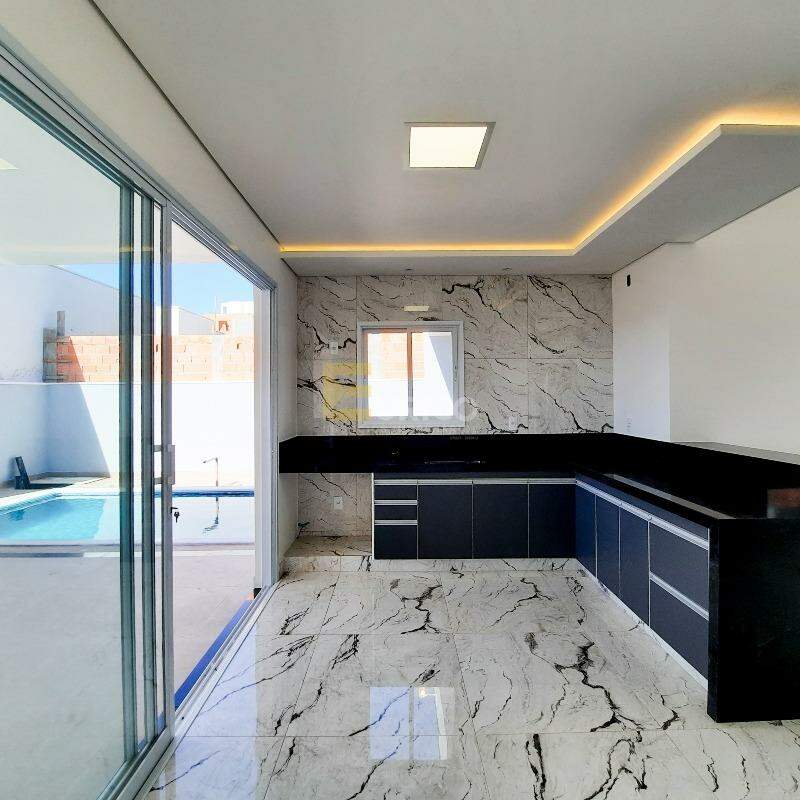 São 3 suítes,1 escritório, sala de tv e jantar com pé direito alto, cozinha integrada, piscina e 2 vagas de garagem.