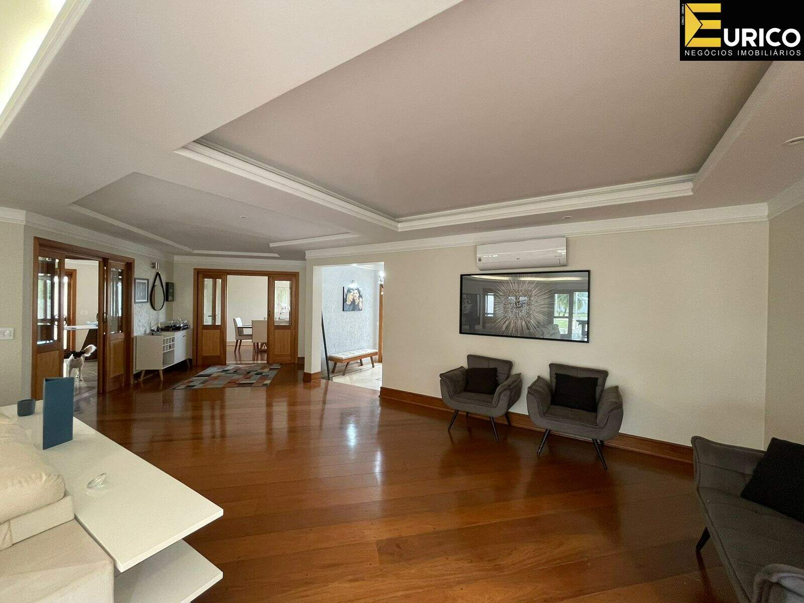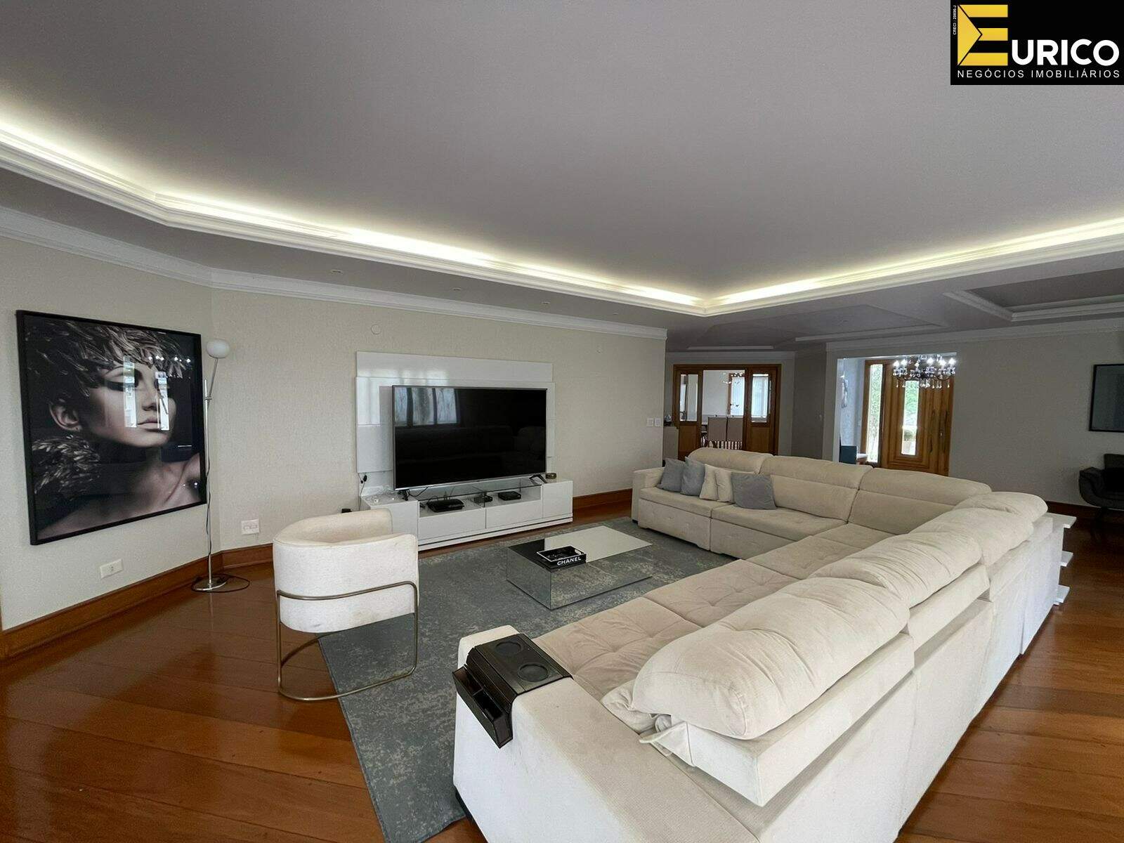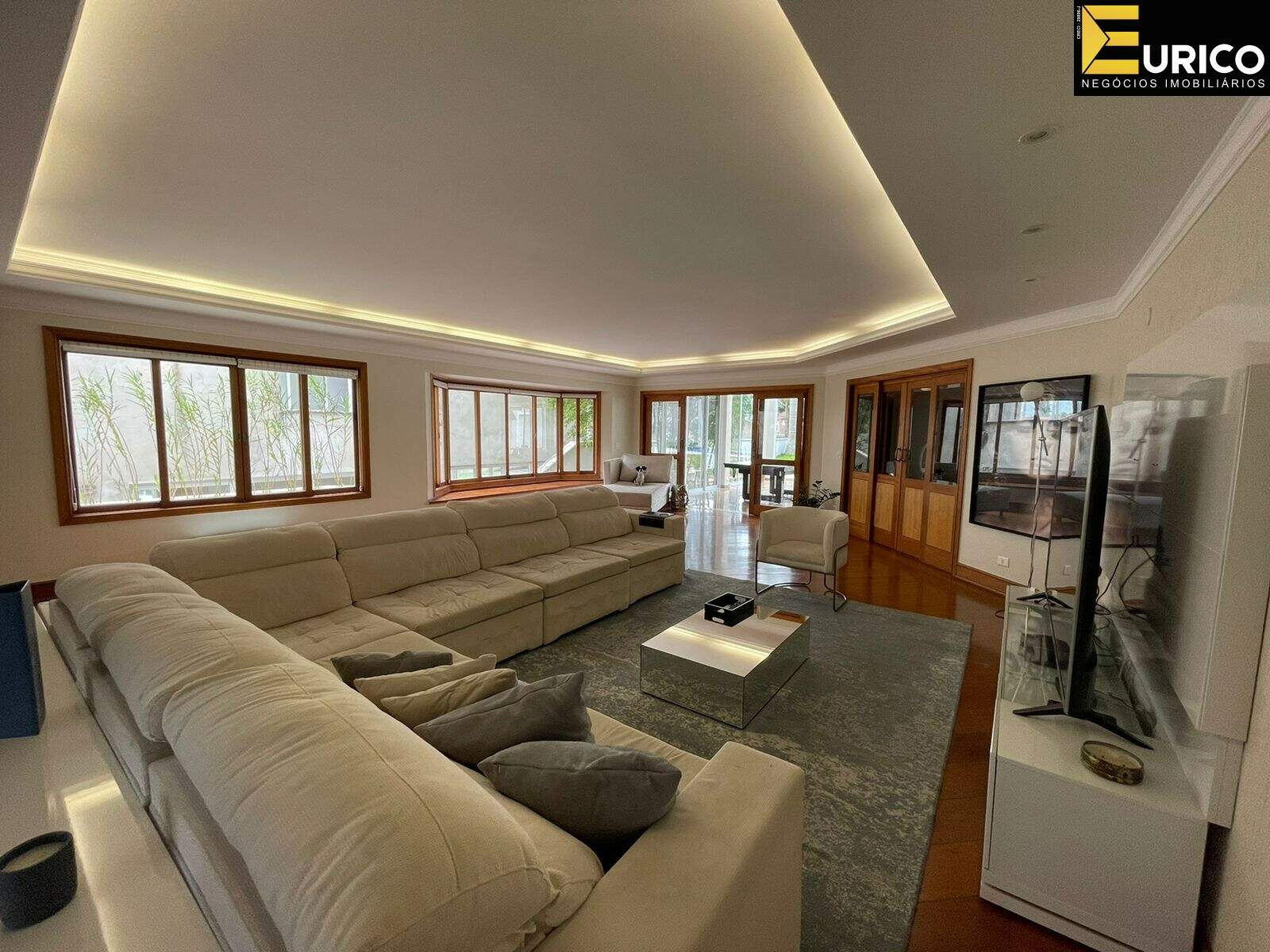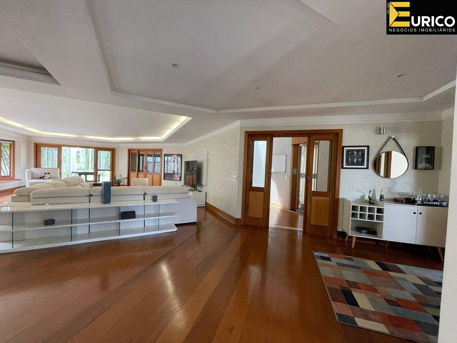 Hall, escritório, lavabo, sala de estar com 110 metros, sala de jantar, home com lareira, copa, cozinha, lavanderia com área externa independente, área gourmet ampla e iluminada interligada a casa e ao jardim, com churrasqueira e fogão a lenha, jardim formado com frutíferas e palmeiras reais, piscina, cascata, jacuzzi, sauna, ducha.