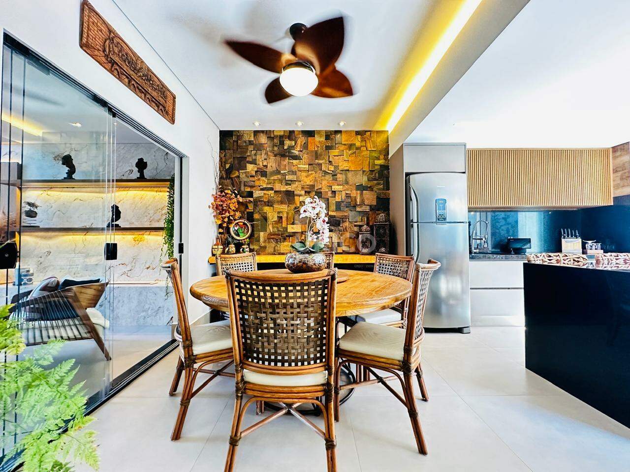 Ao entrar nesta residência impressionante, você será recebido por uma confortável sala de estar com pé direito alto de 6 metros, inundada de luz natural que realça os detalhes projetados e o design contemporâneo. Os móveis, tanto internos quanto externos, foram cuidadosamente escolhidos da renomada marca Artzzi, trazendo elegância e conforto para todos os espaços.